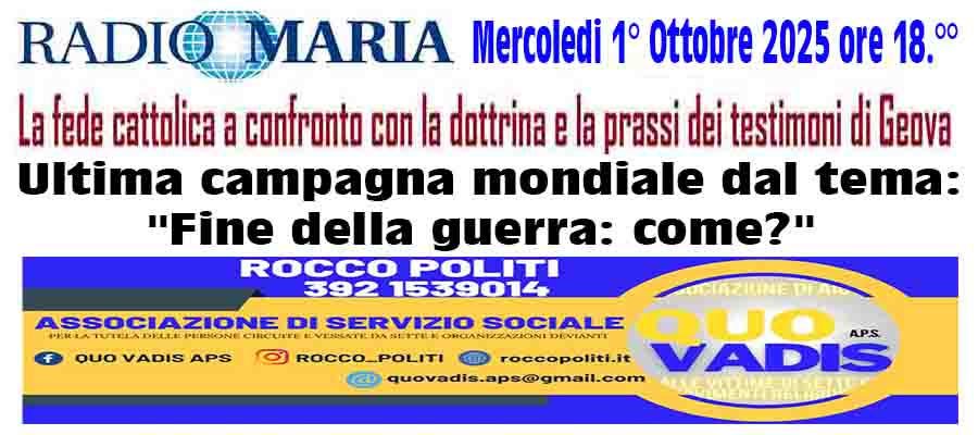 RADIO MARIA: LA FEDE CATTOLICA A CONFRONTO CON LA DOTTRINA E LA PRASSI DEI TESTIMONI DI GEOVA MERCOLEDI 1° OTTOBRE 2025 ORE 18.°°