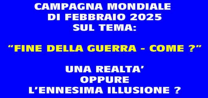 CAMPAGNA MONDIALE DI FEBBRAIO 2025 SUL TEMA – FINE DELLA GUERRA, COME? UNA REALTA’ OPPURE L’ENNESIMA ILLUSIONE?